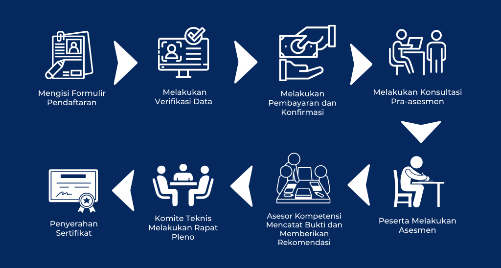 Peserta melakukan pembayaran biaya sertifikasi dan menerima: